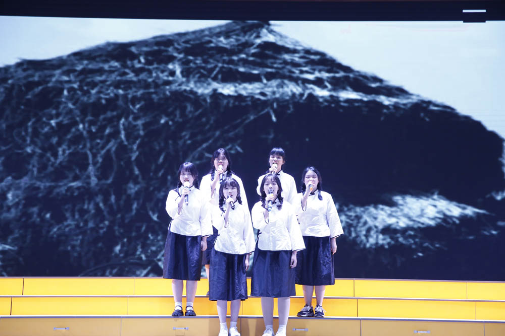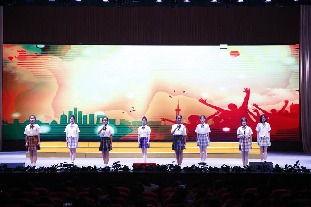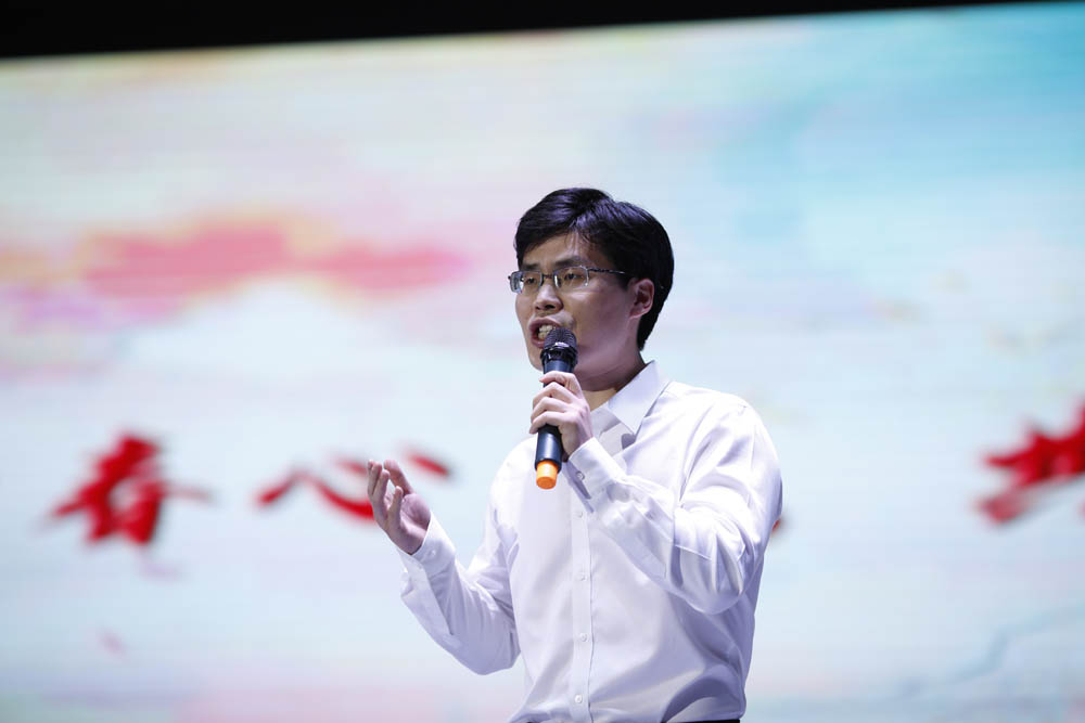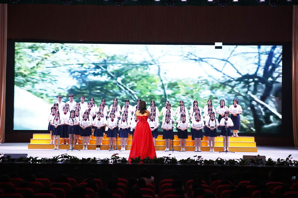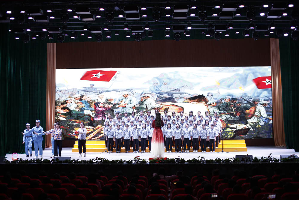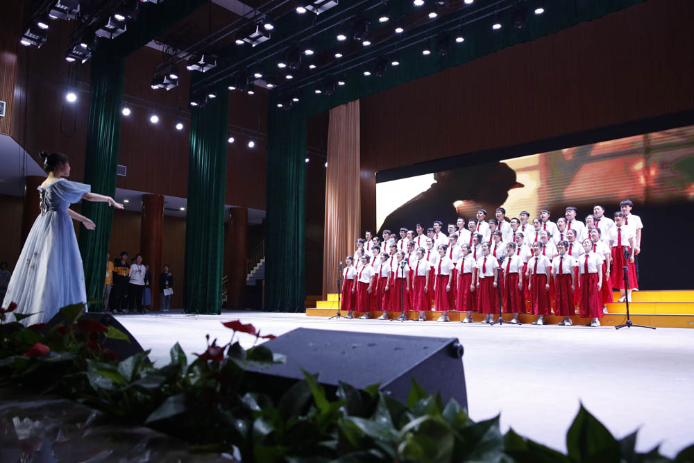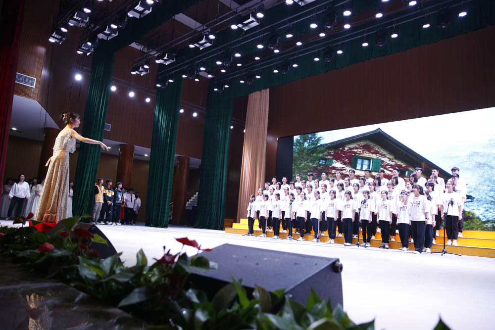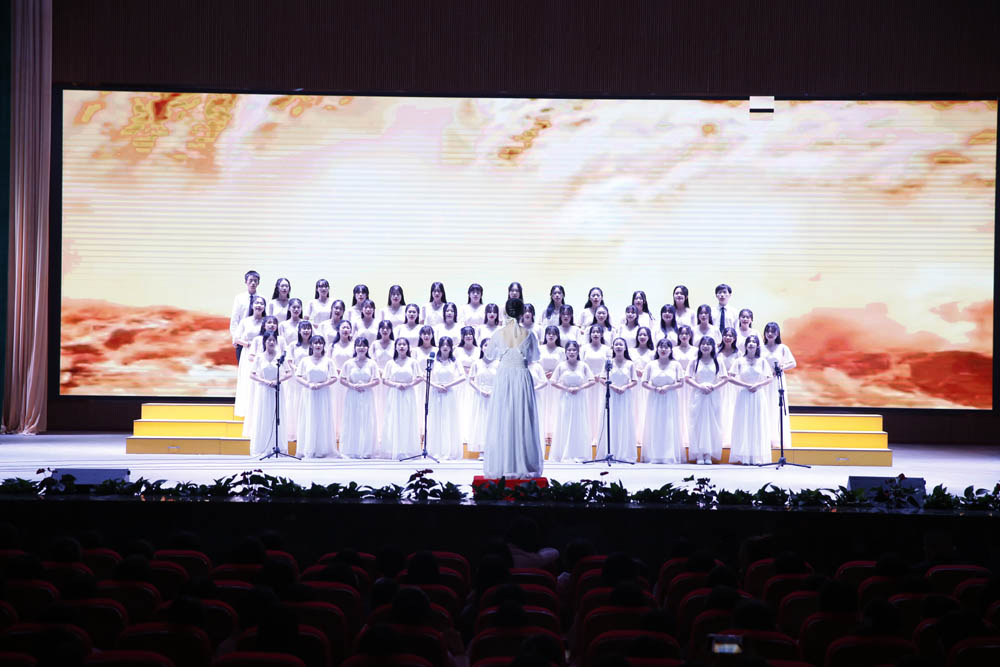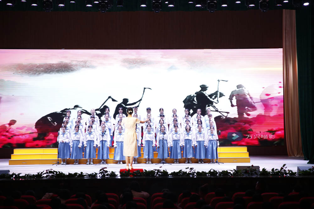 学前1910班全体同学深情演唱的《十送红军》拉开了文艺演出的序幕,婉转优美的歌声博得全场阵阵掌声;肖旭彬等朗诵《少年中国说》,铿锵有力、奋发向上,颂出了一代代中国少年的努力,迎来了中国少年的春天;雷镕嘉等女生三重唱《听妈妈讲那过去的事情》、小教2004班的合唱《我爱你,中国》、学前1903班的合唱《绒花》,颂扬、歌唱了世间的美好与芬芳;学前1905班演唱《黄水谣》与学前2007演唱《南泥湾》,带着我们站在新的历史潮头回顾抗战,使我们感恩先辈,也让我们更加珍惜和维护来之不易的和平。黄丽娟等同学的朗诵《青春万岁》, 展示了广大学生青春活泼、风华正茂的奋斗姿态;罗周祁老师的演讲《激荡青春心灵,共铸时代师魂》结合自己教育教学的亲身经历和感受,以真挚的情感,质朴的语言,讲述了自己从教后的心路历程,精彩的演讲不禁让人肃然起敬,在场师生掌声阵阵;小教2006班演唱的《明天会更好》唱出了对美好明天的深情祝福,表达了对光明未来的无限憧憬;最后全场合唱由陈小科老师作曲编写的原创歌曲《追梦少年》点燃了整个大礼堂的热烈气氛,唱出了所有人的心声。“实现中国梦,青春勇担当”,他把这首歌献给所有怀揣梦想的同学们,愿大家在追梦的路上能开拓前行,不断进取。每一个表演都让人赏心悦目、心潮澎湃,激励广大青年学子始终不忘党的初心、时刻牢记青春使命,高举团旗跟党走,走在时代最前列。