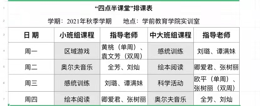 “亲爱的老师们,经过前期精心的筹划和准备,大家翘首以盼的‘四点半课堂’将于下周一正式开班,现接受我校教职工3—6周岁的幼儿报名,也诚挚邀请各位领导老师前来参观和指导工作。”“四点半课堂”2021年秋季学期开课的消息很快得到家长们的响应,共有41位家长第一时间报名。