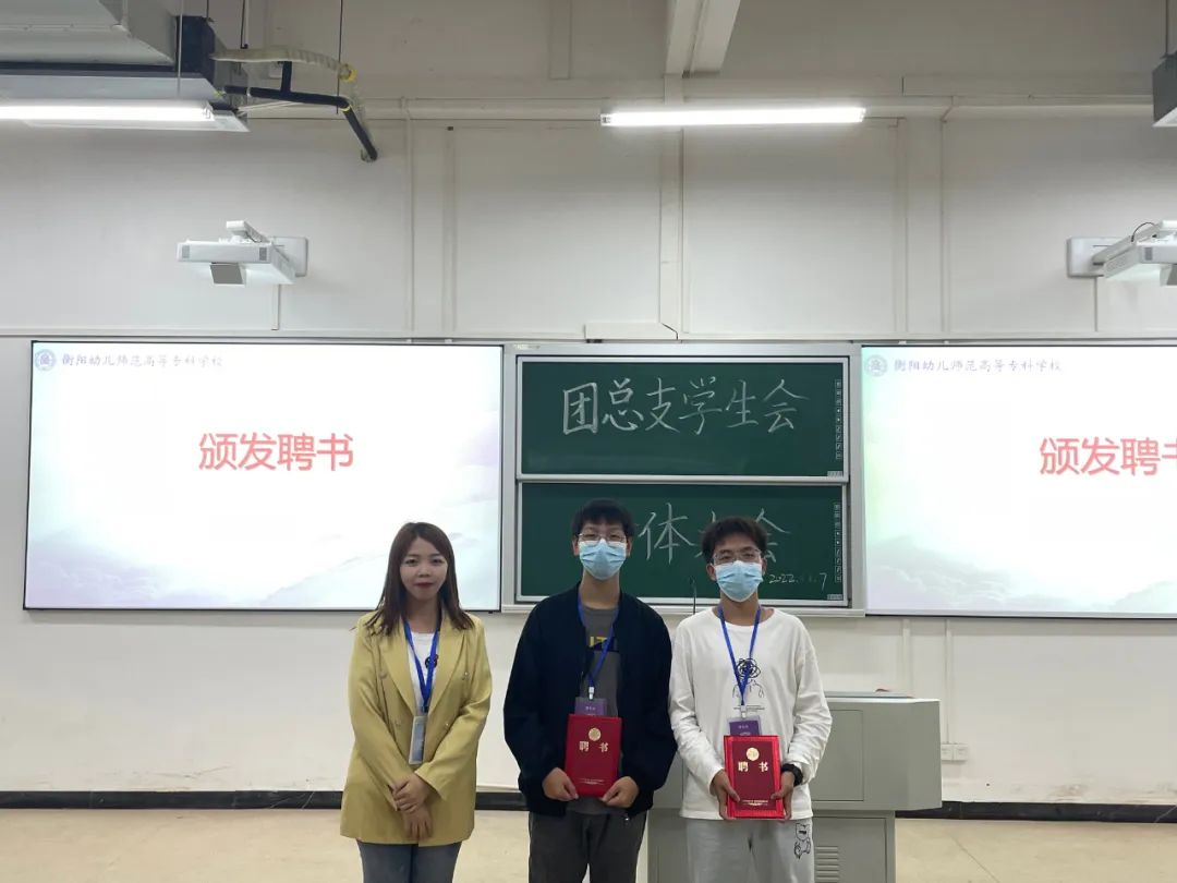 大会开始,吴迪副主任和吴鹏老师为团总支、学生会优秀学生干部颁发荣誉证书,指导老师陈琴、罗娇霞为团总支、学生会新成员颁发聘书。