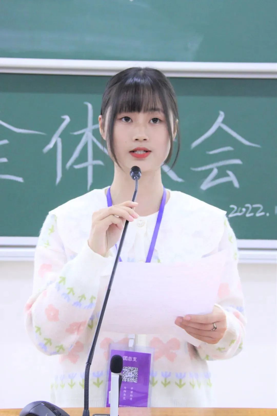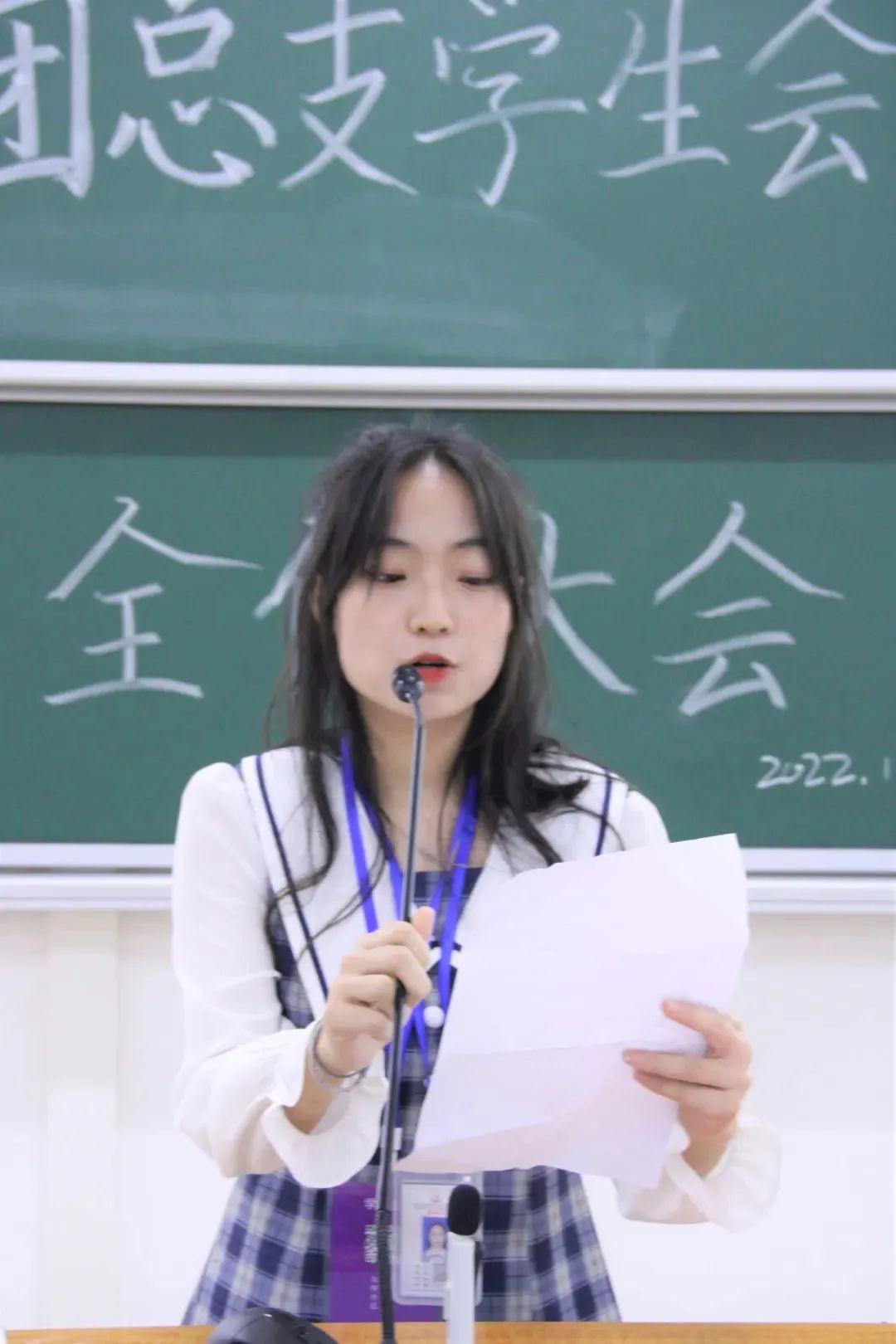 何瑾同学讲到在过去一个多月的时间里,经历了许多个“第一次”,第一次编辑通知,第一次写策划案,第一次展开活动,自己和新晋的团总支成员努力的完成好每一次任务,迎难而上,在挫折中前行,不断成长,希望未来可以为学校的建设和活动的举办做出更多属于我们的贡献。
