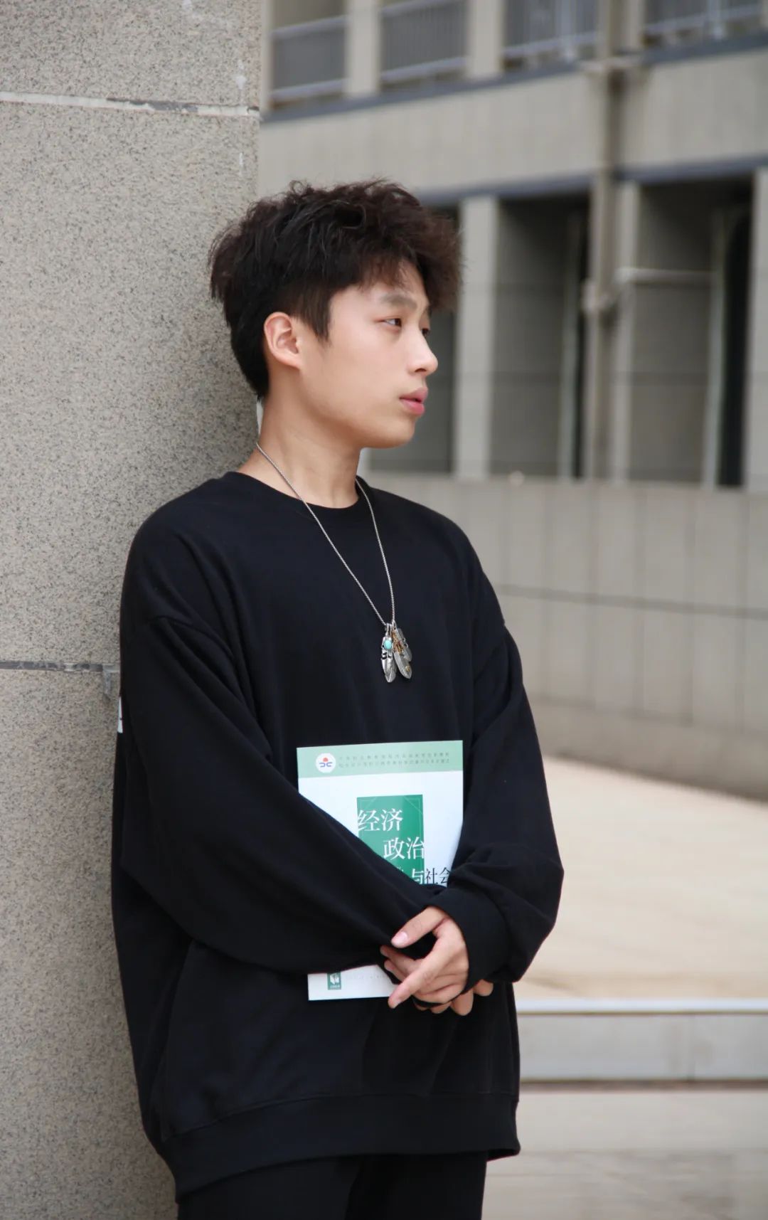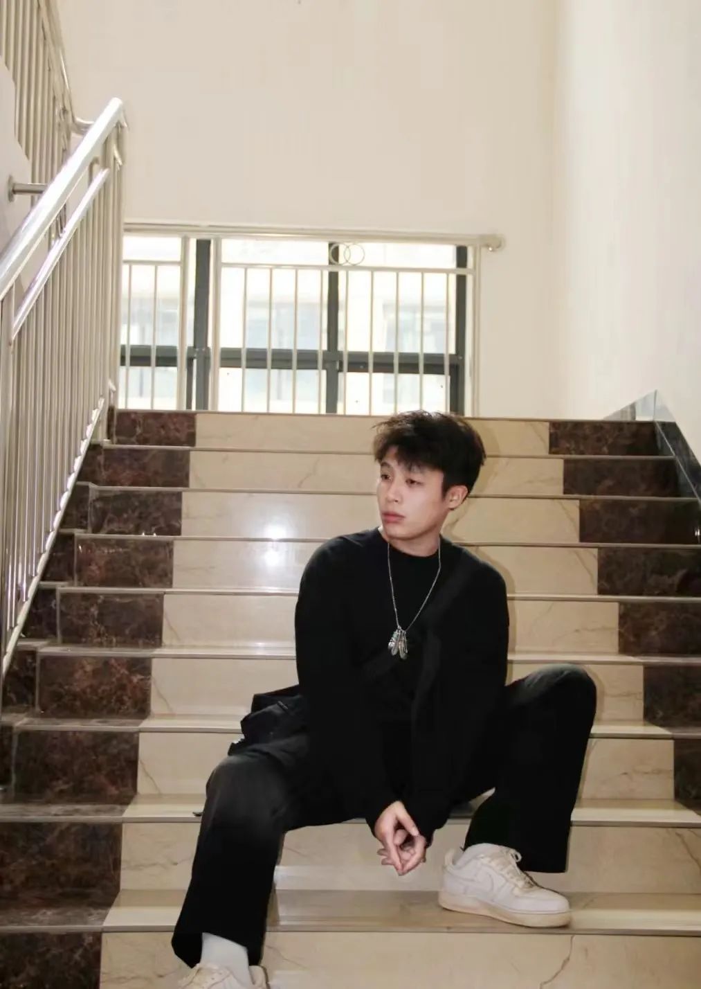 一身黑色穿搭,低调稳重