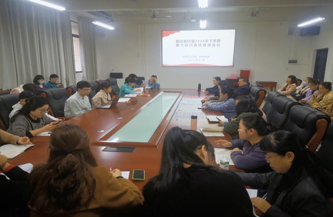 2022年11月25日中午,在学前教育大楼B204会议室,学前教育系全体教师与马克思主义学院概论教研室教师进行了协同备课活动。